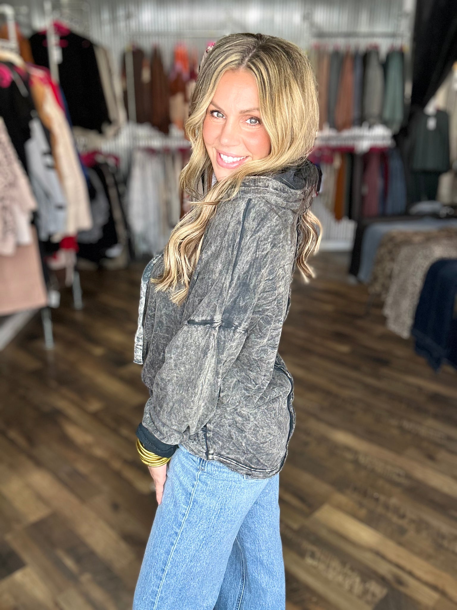 Ashed Black Mineral Wash Twisted Lightweight Hoodie *FINAL SALE*
