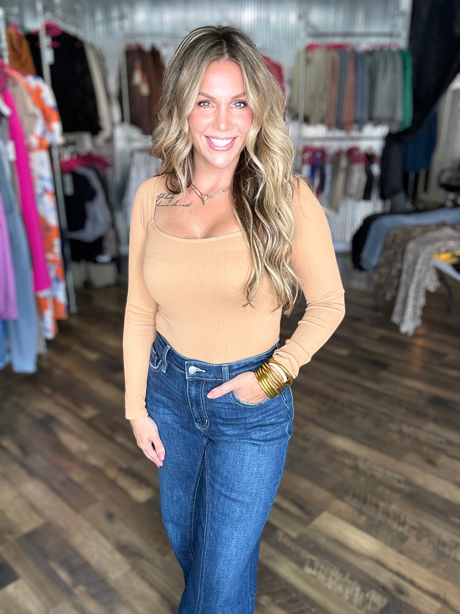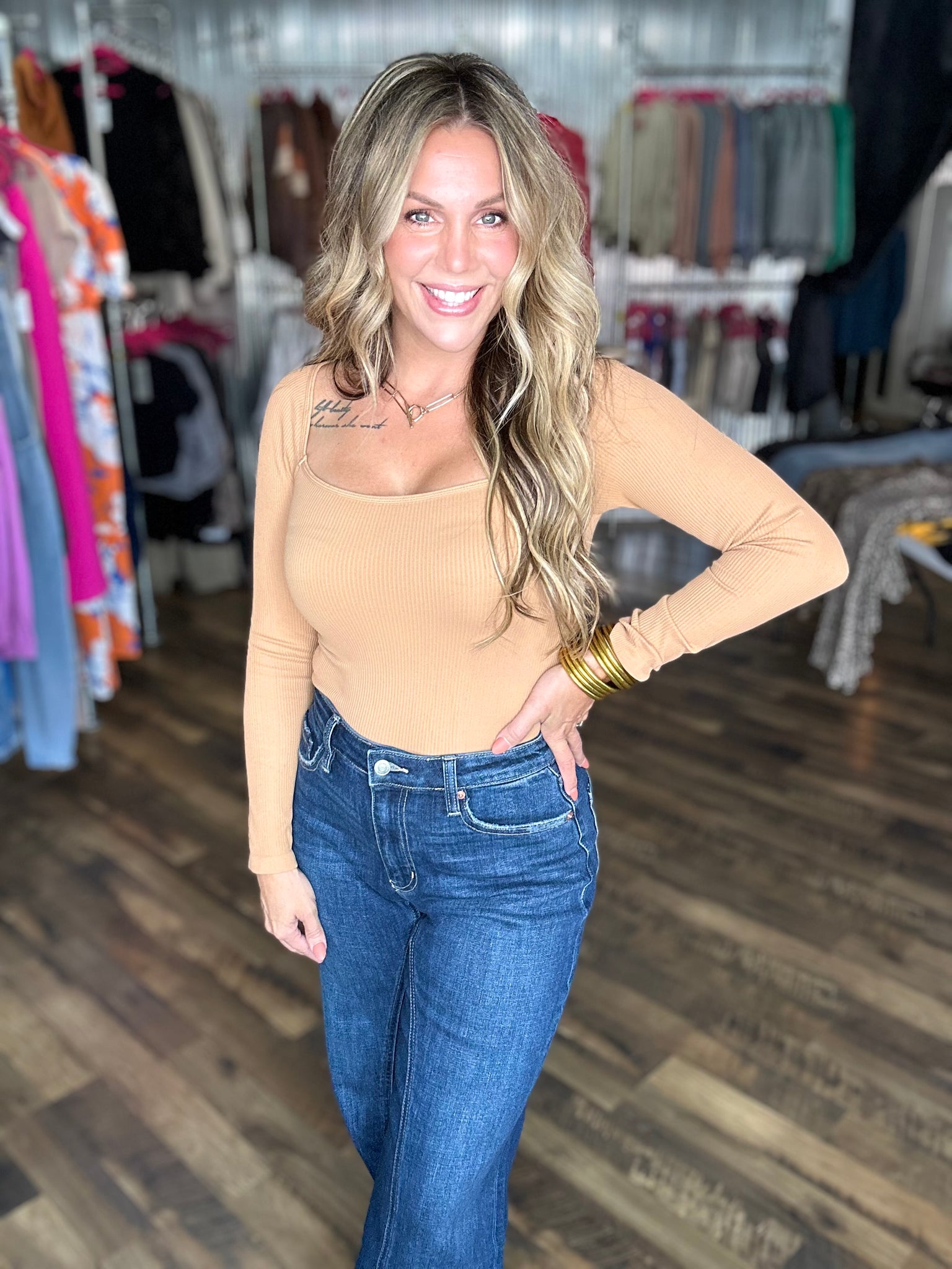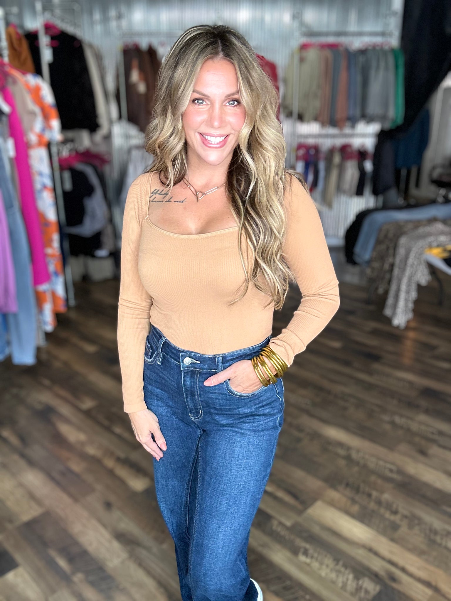 Nikibiki Az Tan Ribbed Long Sleeve Square Neck Top *FINAL SALE*