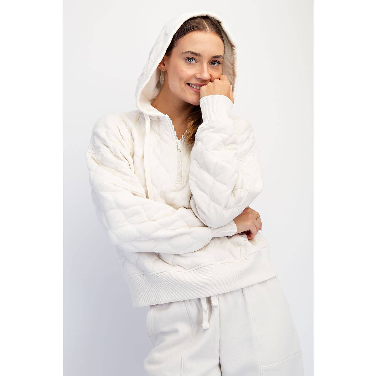 Bone Quilted Quarter Zip Hooded Jacket