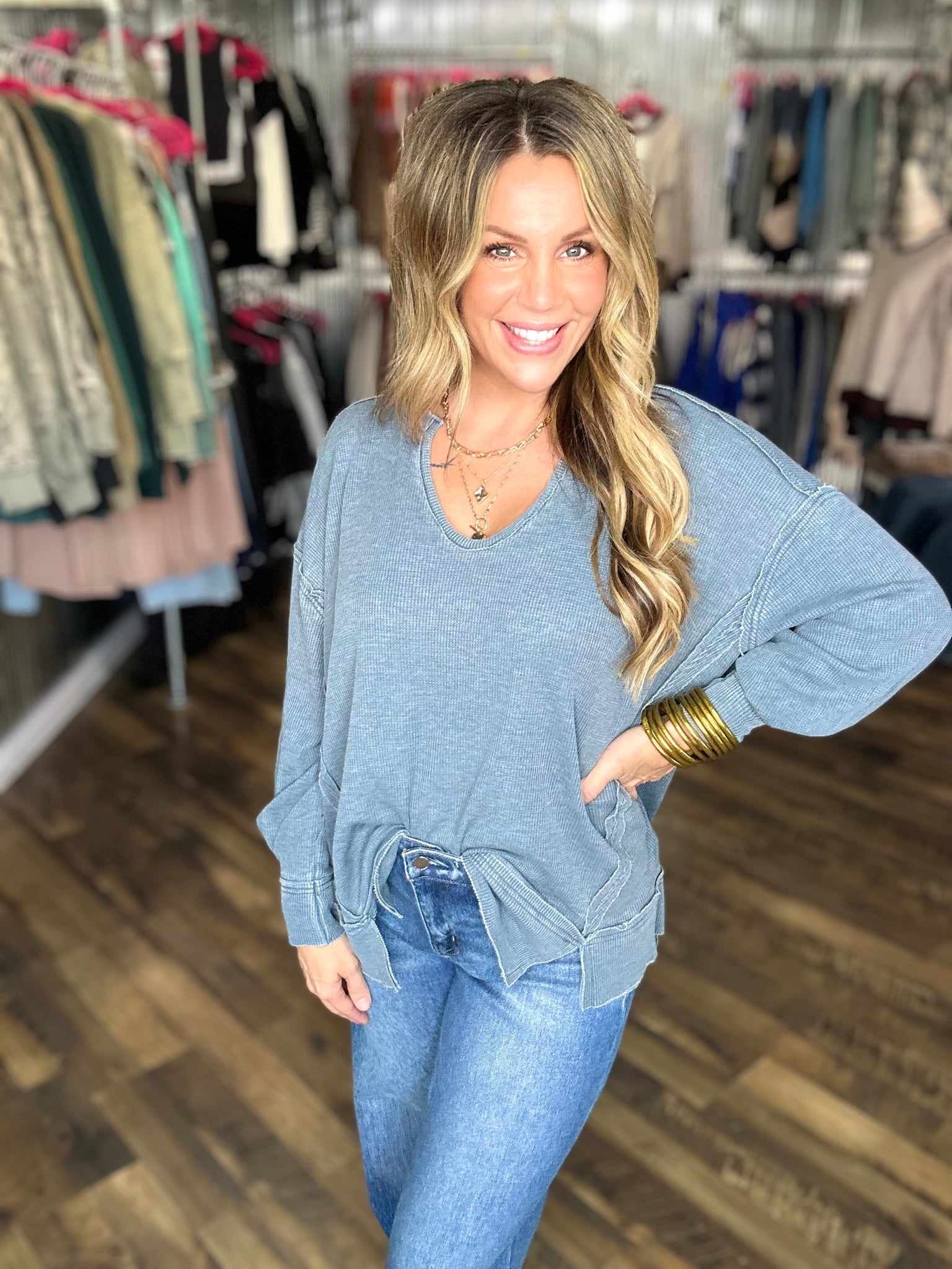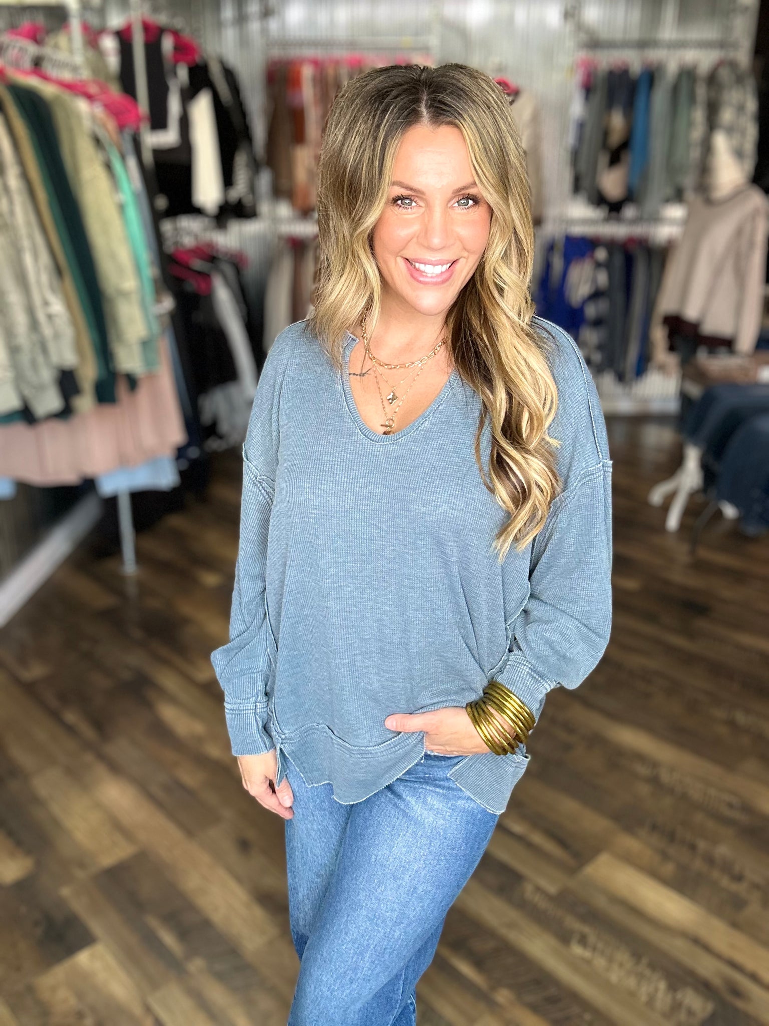 Midnight Navy Cotton Blend Waffle Knit Oversized Long Sleeve *final sale*