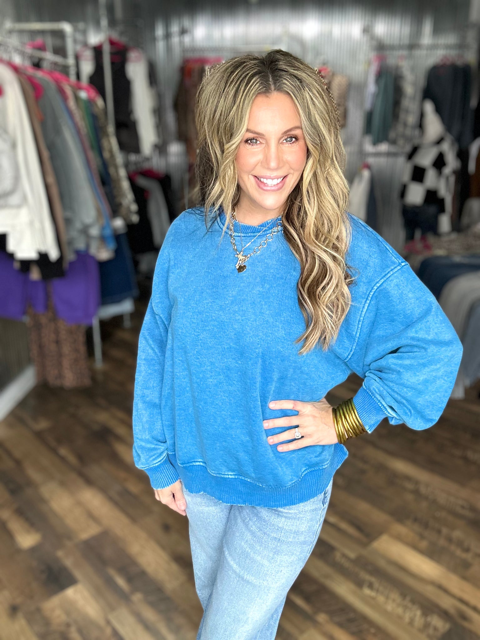 Ocean Blue Acid Wash Oversized Fleece Pullover